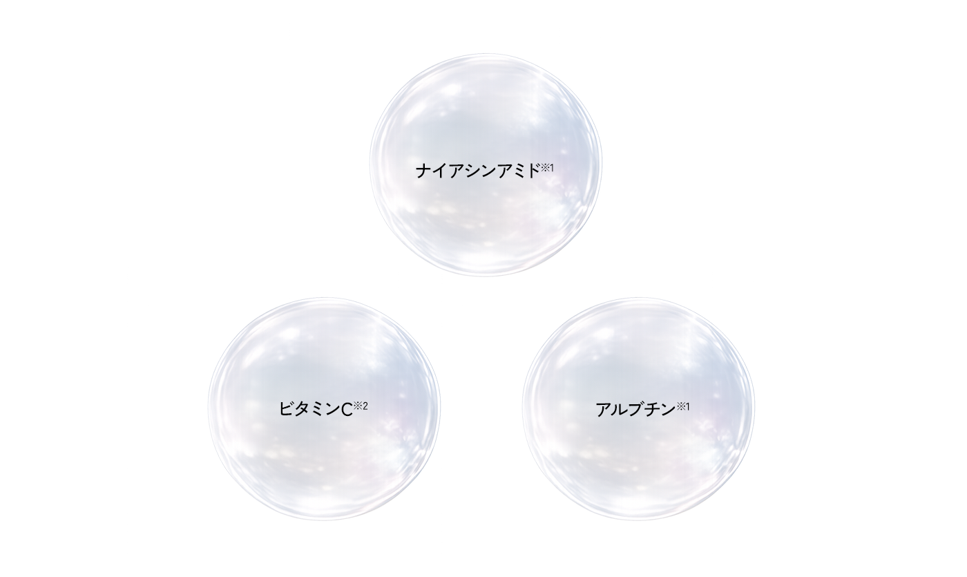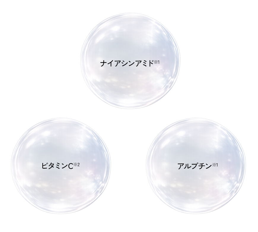 ※3 サッカロミセス/コメ発酵液、プルーン分解物、ソメイヨシノ葉エキス、キウイエキス、サトザクラ花エキス、チャ葉エキス、テンチャエキス、ビク葉エキス、ローズマリー葉エキス(すべて保湿成分)